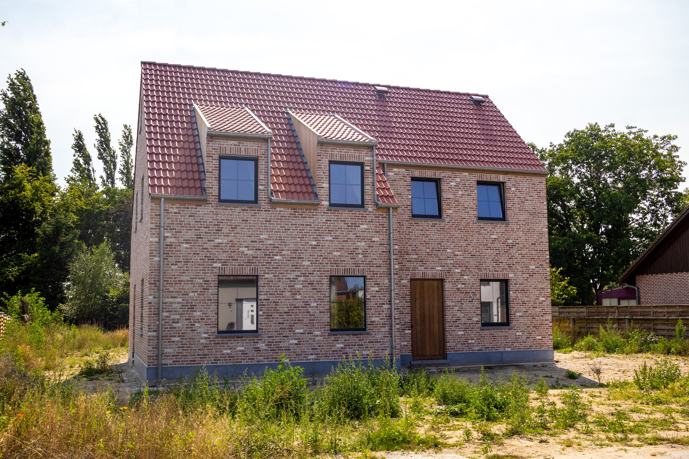 Deze prachtige landelijke nieuwbouwwoning in Koekelare combineert authentieke charme met hedendaags wooncomfort. De gevel in karaktervolle Beerse klinker (rijnformaat) verwerkt in wildverband en het hellend dak met rode dakpannen zorgen voor een warme, tijdloze uitstraling die perfect past in de groene omgeving. De woning geniet van veel natuurlijke lichtinval dankzij de lichtrijke indeling met grote PVC raampartijen (Elegant ThermoFibra).